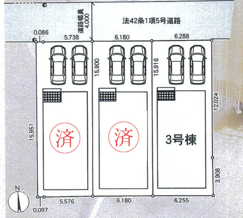 一方 北 間口6.2m 私道 幅4m 位置指定有 |