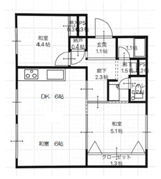 | 専有面積 | 51.7㎡(壁芯) | 建物構造 | 鉄筋コンクリート(RC) |