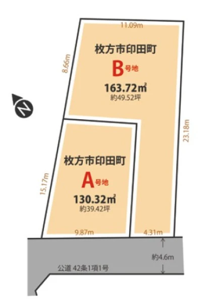 一方 南西 間口4.3m 公道 幅4.6m |