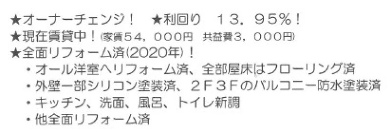 | 現況 | 賃貸中 | 取引態様 | 媒介 |