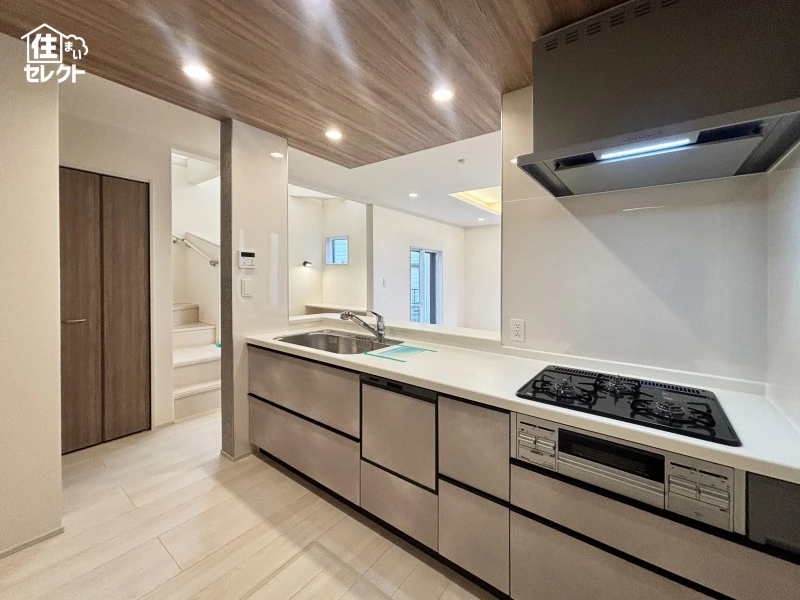 | 設備 | 都市ガス、電気、上水道、下水道、浄水器、食器洗浄乾燥機、給湯、追焚機能、温水洗浄便座、シャンプードレッサー、フローリング、複層ガラス、床下収納、駐車2台可、モニタ付インターホン | ||