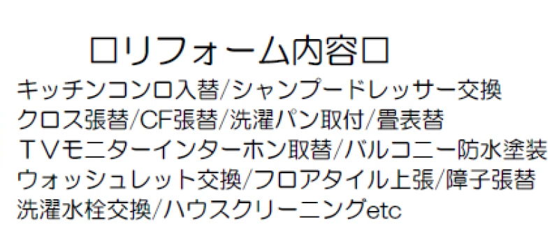 | 特徴 | 内装リフォーム | ||