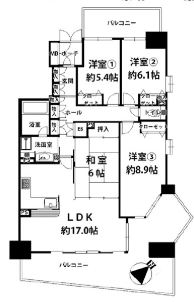 | 間取り | 4LDK | 間取り向き | (角部屋) |