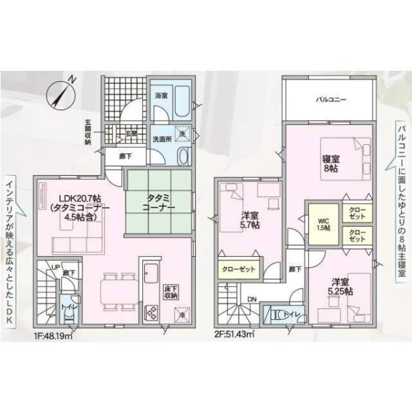 | 設備 | 都市ガス、電気、上水道、下水道、システムキッチン、浄水器、給湯、トイレ2箇所、温水洗浄便座、シャンプードレッサー、浴室乾燥機、フローリング、複層ガラス、ルーフバルコニー、収納スペース、ウォークインクローゼット、床下収納、ディンプルキー、モニタ付インターホン、火災警報器等設置済、建設住宅性能評価取得(予定含む) | ||