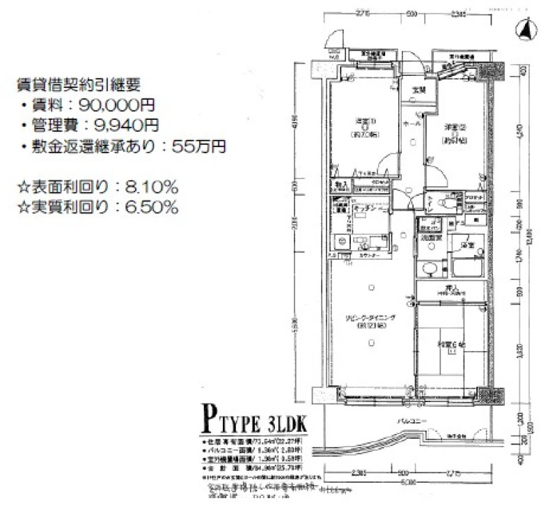 | 専有面積 | 73.64㎡(壁芯) | 建物構造 | 鉄筋コンクリート(RC) |