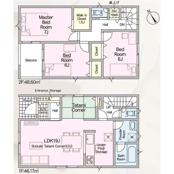 | 設備 | 都市ガス、電気、上水道、下水道、システムキッチン、浄水器、給湯、トイレ2箇所、温水洗浄便座、シャンプードレッサー、浴室乾燥機、フローリング、複層ガラス、ルーフバルコニー、収納スペース、ウォークインクローゼット、床下収納、駐車2台可、ディンプルキー、モニタ付インターホン、火災警報器等設置済、建設住宅性能評価取得(予定含む) | ||