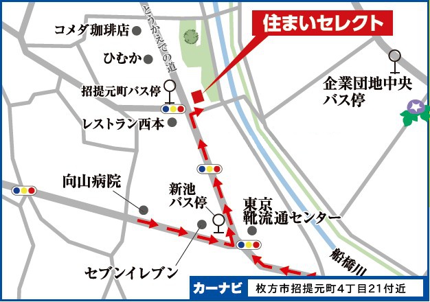 Googleマップで「住まいセレクト枚方店」と検索すれば簡単です