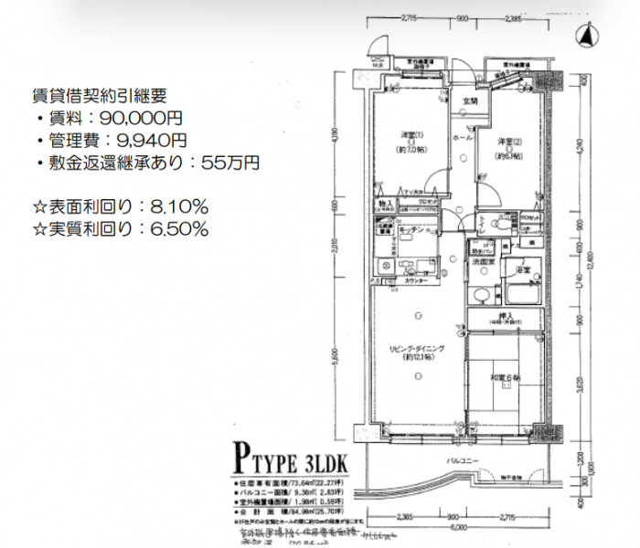 | 専有面積 | 73.64㎡ | 建物構造 | RC |
