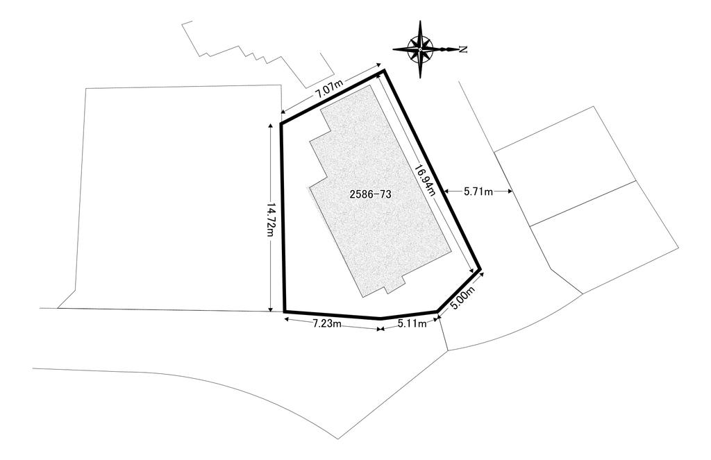 | 接道状況 | 北5.7m 公道 接面16.9m 位置指定無 東8.8m 公道 接面17.3m 位置指定無 二方道路(除角地) | ||
