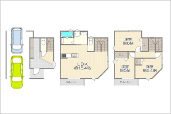 | 設備 | トイレ2ヶ所、追焚機能、浴室乾燥機、食器洗浄乾燥機、電気、上水道、下水道、複層ガラス、駐車場2台分、耐震等級3、住宅性能評価[シューズインクローゼット] | ||