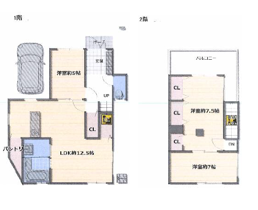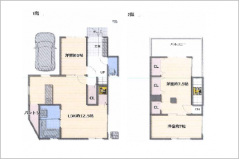 間取り | 4LDK | 間取り内訳 | 1F洋5畳×1室 1FLDK12.5畳×1室 2F洋7.5畳×1室 2F洋7畳×1室 |