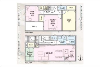 | 設備 | 温水洗浄便座、トイレ2ヶ所、浴室乾燥機、システムキッチン、カウンターキッチン、浄水器、床下収納、洗髪洗面化粧台、電気、都市ガス、上水道、下水道、複層ガラス、モニタ付インターホン、ディンプルキー、ルーフバルコニー、[火災警報器等設置済] | ||